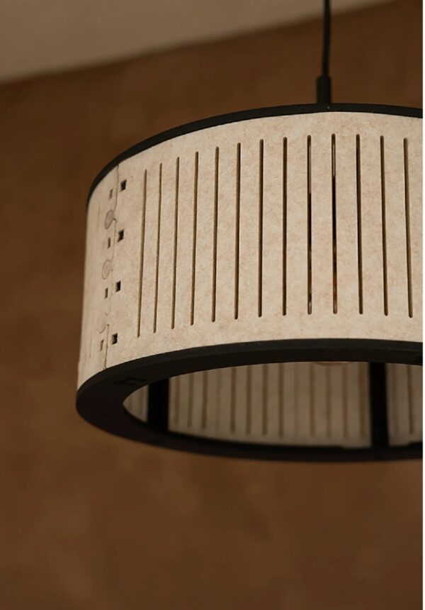 Het vilt is afkomstig van gerecyclede PET flessen en het hout is afkomstig van reststromen van industriële bouwmarkten. De PET Felt lampenkap geeft dit armatuur een hoge akoestische waarde, handig om jouw woonkamer geluidstechnisch wat beter te laten klinken. Daarnaast geeft deze hanglamp natuurlijk ook een uniek en gebalanceerd lichteffect, dankzij de verticale uitsneden.